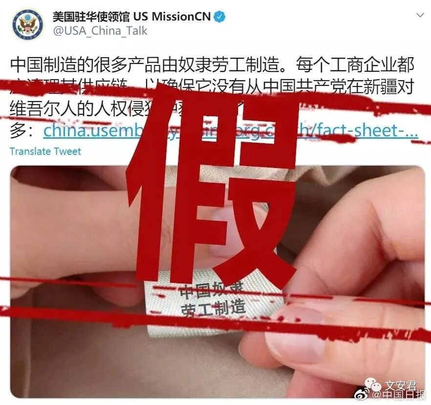 但是,也得留心美国洗脑机器近期又在新疆事件上疯狂造谣抹黑中国。美国驻华大使馆居然自己公然疯狂造谣,用PS的造假图片来抹黑中国。引发中国网民群嘲。