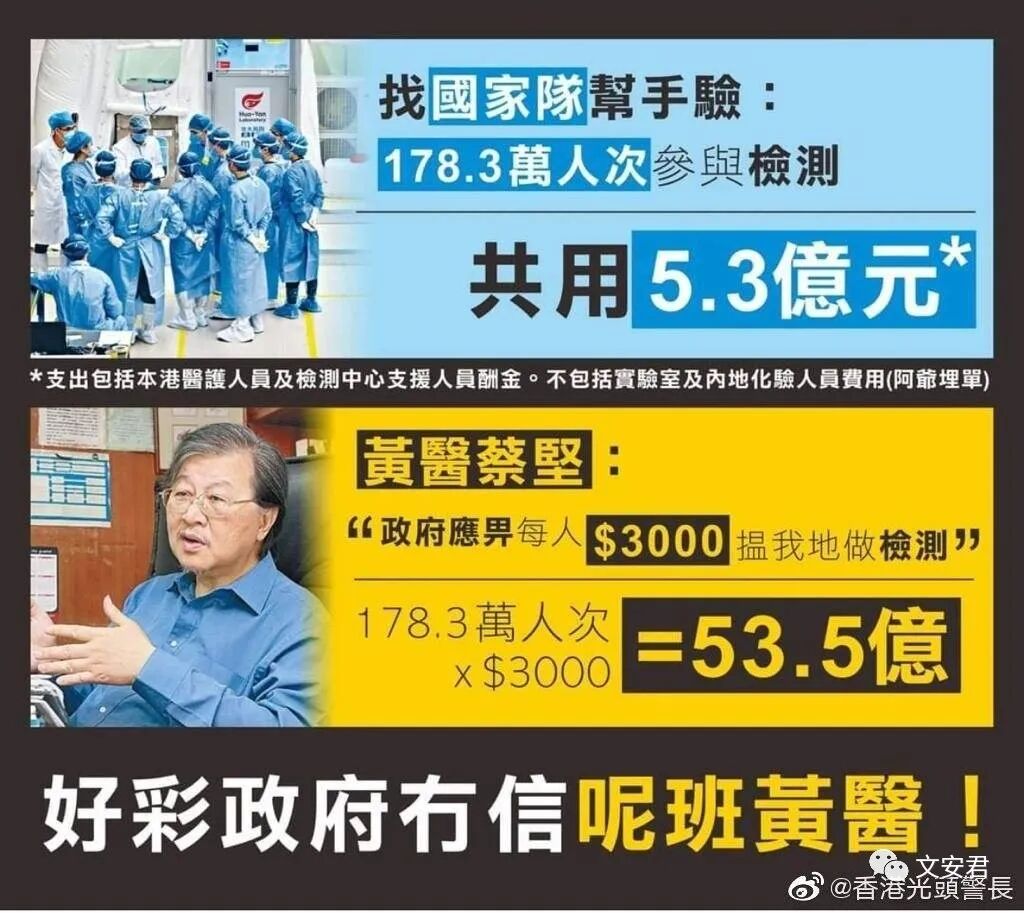 中央政府援助香港的免费检测和治疗,香港黄营群起反对