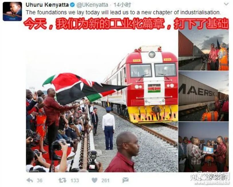 蒙内铁路通车那天,肯尼亚总统激动地说:”今天,我们为新的工业化的篇章,打下了基础。“