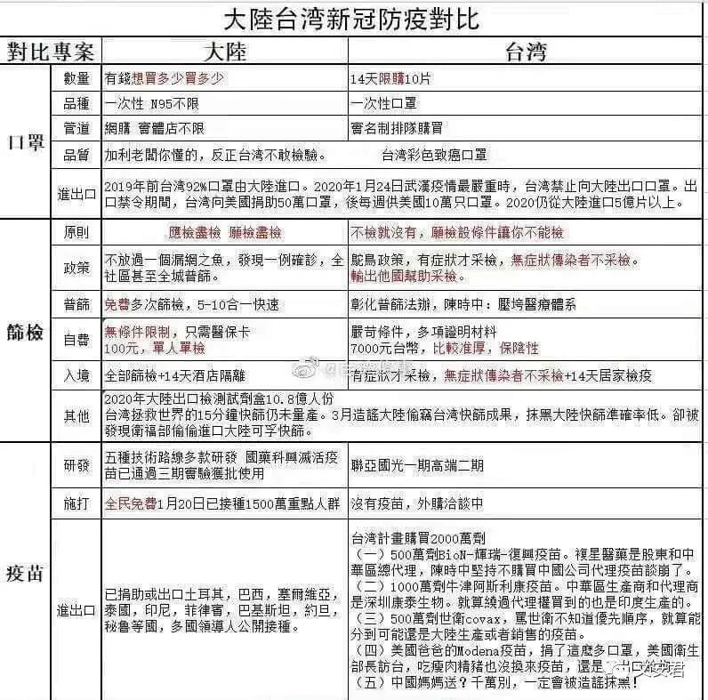 核酸检测试剂,台湾的价格(大部分是采购的大陆生物医药厂商的试剂)是福建的10倍以上。香港的价格是深圳的约2倍。重点是,你随便去问一个台湾人香港人,他们的认知,可能跟上述的数据和事实,会完全不一样。港台媒体洗脑,会彻底扭曲真正的完整事实,会完全操控一个人的思想认知。第三个人则说“愿意打,因为总要有人当白老鼠《牺牲》一下”在某些人心目中,只有高级高贵高档的欧美白种人的产品,才是高贵、可信、品质高的,中国大陆的产品都是品质低劣的。台湾香港的反中政客们,怎么会放过任何一个贬低、抹黑、丑化大陆的机会?大家觉得,台湾和香港的井盖,还有可能打得开吗?🤔🤔🤔世界上已有40多个国家已经施打,或等著施打中国大陆的新冠肺炎疫苗,包括土耳其、印尼、巴林、约旦、阿联酋、塞尔维亚、乌克兰、泰国、巴西等。