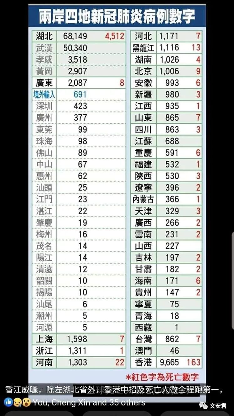 从全球各地抗疫表现来说,台湾、福建、香港、深圳,都算优等生。但如果互相比较,福建约3900万人500余病例,台湾约2300万人800余病例。深圳常住约2000万人400余病例,香港700万人约10000病例。跟深圳相比(3倍于香港的人口,交通上,早期湖北疫情更容易扩散到深圳,深圳更难控制),香港表现最差。跟福建相比(1.7倍于台湾人口,交通上,早期湖北疫情更容易扩散到福建,福建更难控制),台湾算表现一般。