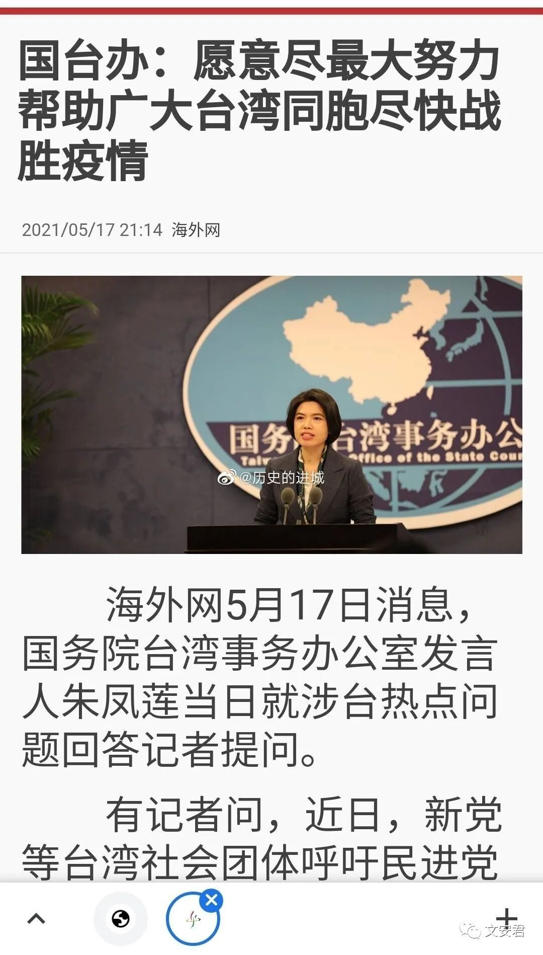 4. 国台办说,“愿意尽最大努力,帮助台湾同胞尽快战胜疫情”。