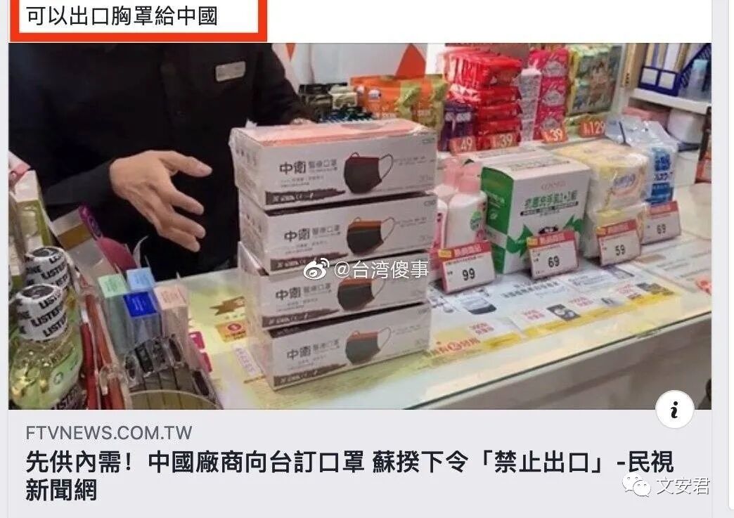 台湾政客更是丑态百出,下令禁止口罩出口大陆,
