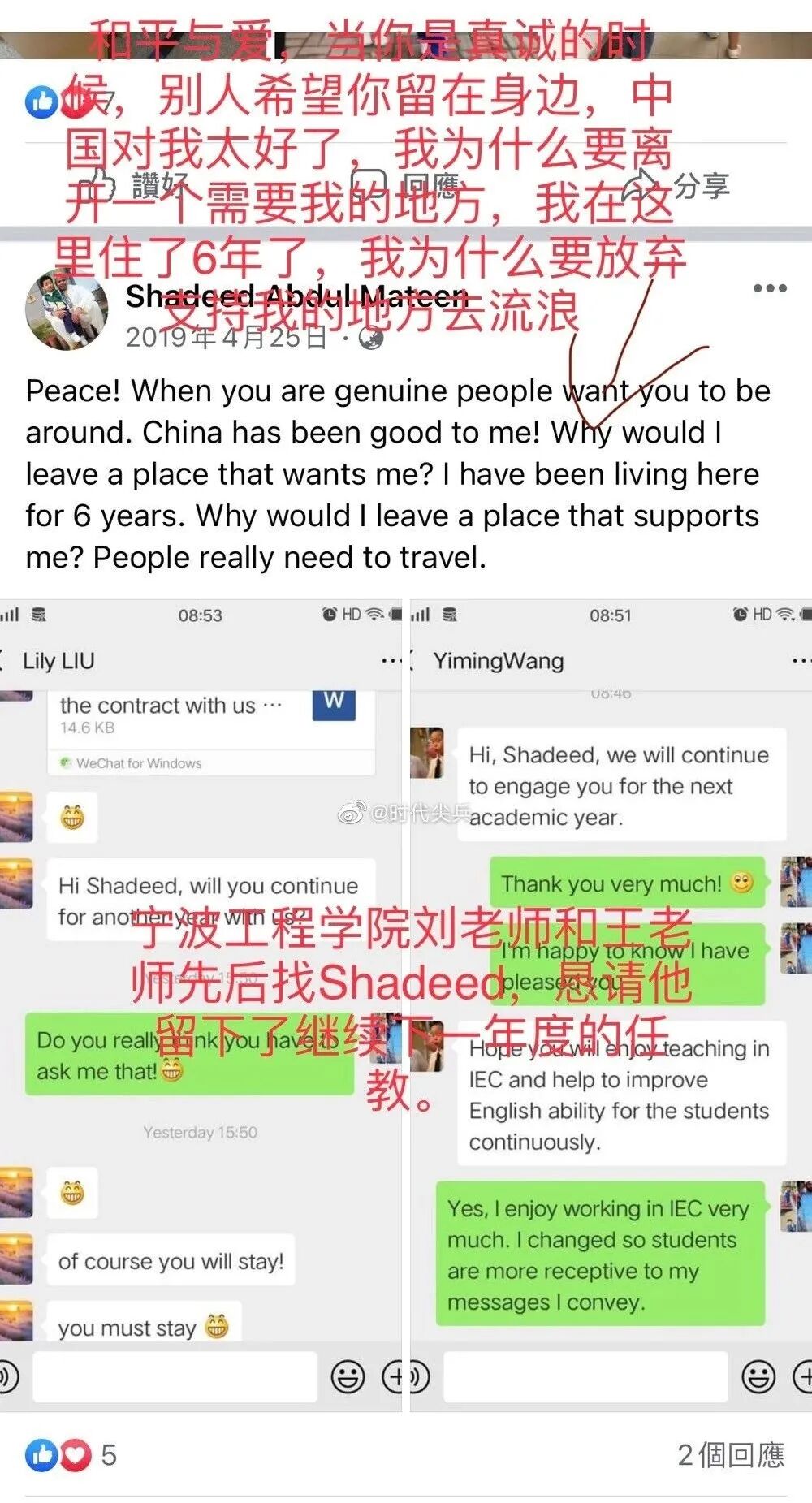 2019年4月,Shadeed想离开(具体原因不知),宁波工程学院两位招录老师,硬是把他给挽留下来了(他自己在社交账号披露)。