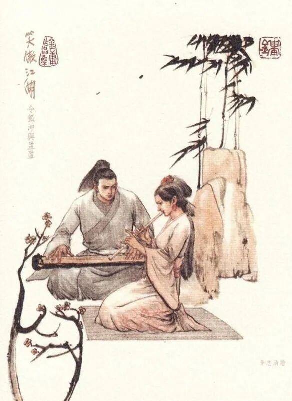 ▲ 图片来源:笑傲江湖令狐冲与任盈盈(李志清)