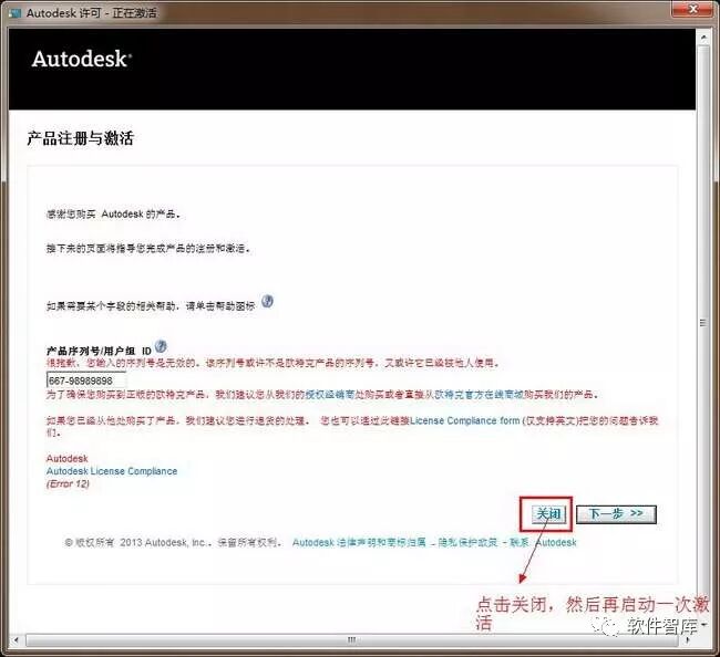 18.提示输入的序列号无效,不用管它,直接点击【关闭】