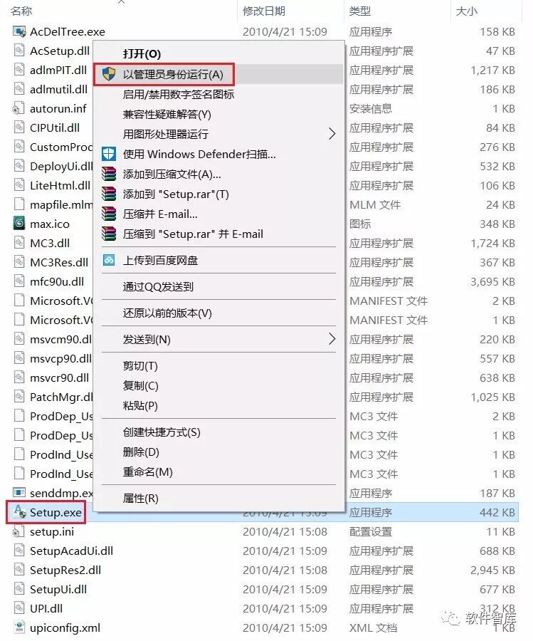 2.安装前先断开网络,在3Ds Max 2011文件夹内找到Setup.exe,鼠标右击选择【以管理员身份运行】