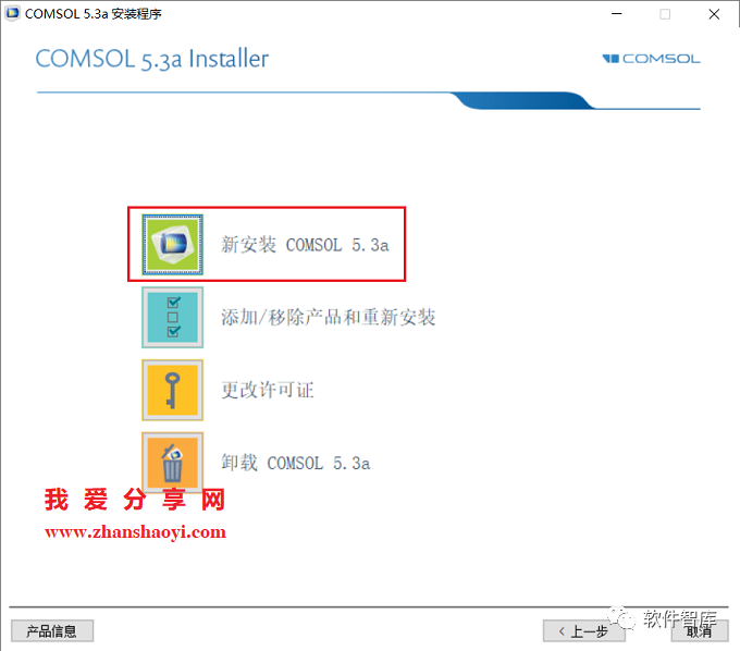 4.点击【新安装COMSOL5.3】按钮