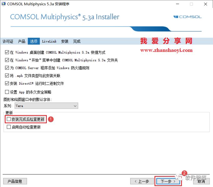 9.先取消“安装完成后检查更新”前面的勾选,然后点击【下一步】