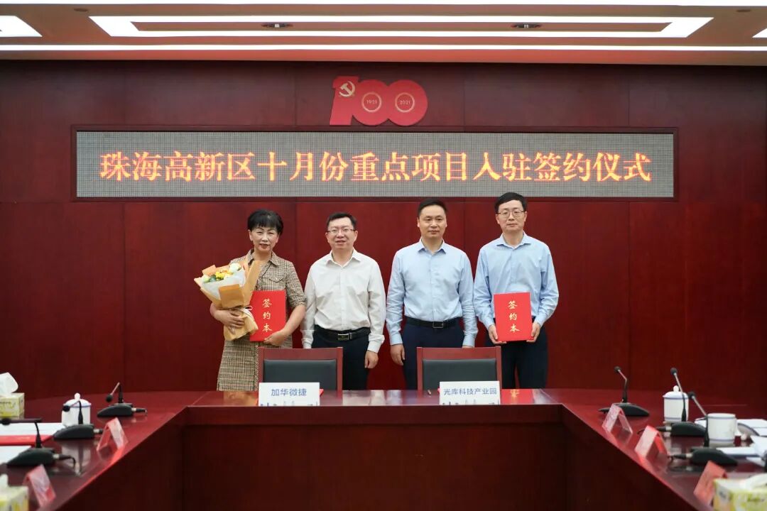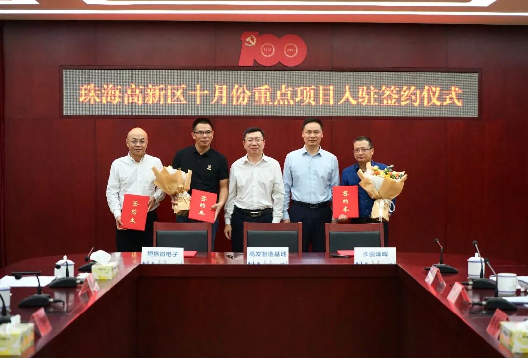 10月29日,珠海高新区十月份重点项目入驻签约仪式在区管委会举行,恒格微电子、长园泽晖、泰坦智能动力、加华微捷、大道机器人五大重点产业项目参加集中入驻签约仪式,正式入驻高新区产业园,项目投资总额6亿元,预计产值达20亿元。