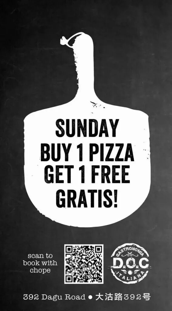 As well as brunch specials, Sundays sees and unbeatable 2-for-1 pizza deal at D.O.C. Gastronomia Italiana all day, evening and night long.