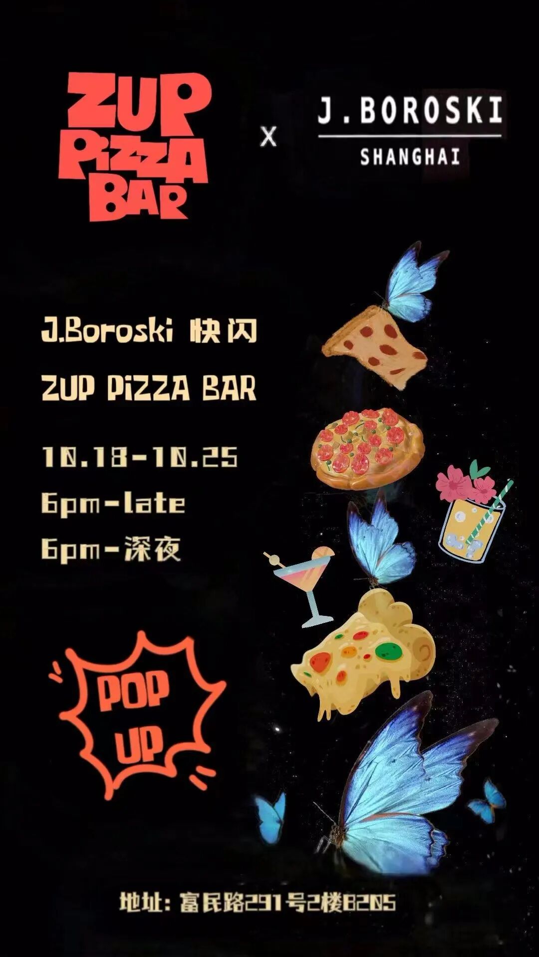 J.Boroski is popping up at Zup Pizza Bar till October 25. Expect daily cocktail specials and delicious pizza.Zup Pizza Bar B205, 2/F, 291 Fumin Lu, by Changle Lu 富民路291号2楼B205, 近长乐路.Thursday