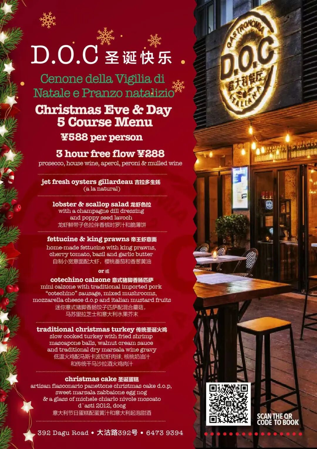 How much? RMB298 per person for Christmas Brunch, RMB188 for 2-hours of free flow, (RMB98 for kids), RMB398 for two persons for Christmas DinnerCuivre