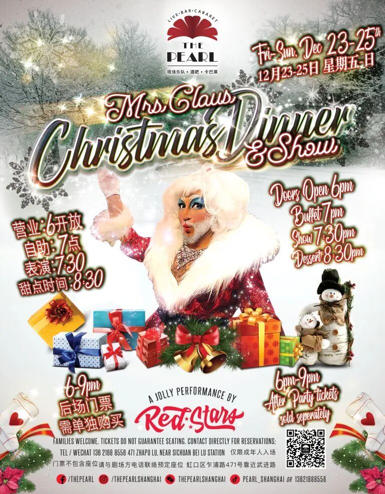 Mrs Claus welcomes you to a hearty Christmas Feast, prepared by none other than Chef Elf Baidas himself, complete with a full buffet of Montreal smoked meats, whole roasted turkey, shepherd's pie, mixed seafood, poutine and a bit of mulled wine for a hint of debauchery.And what is a Christmas evening without some festive entertainment? Mrs Claus will be inviting a delightful group of North Pole friends to entertain you all. Expect to be regaled by Christmas classics that will make you feel at home and all warm and fuzzy.When? Dec 23-25, 6pm-late