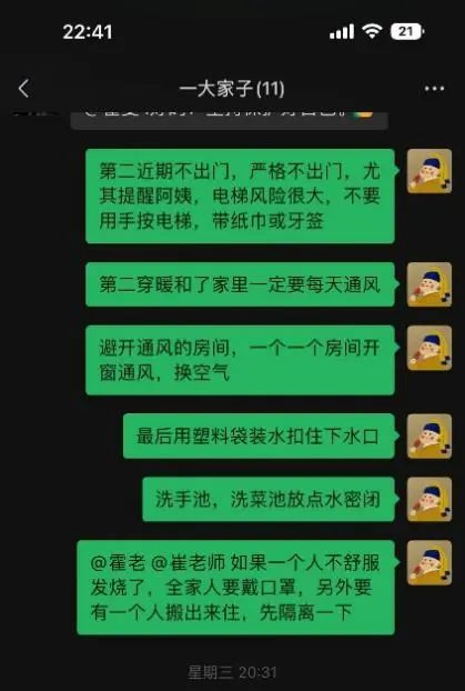 11月中我父母就几乎不出门,开窗通风,阿姨出门戴口罩,手套,回家立即洗手,不揉眼睛、不挖鼻孔、不去超市,不去医院(连老妈的心脏起搏器复查都没有去),所有需求在网上解决,快递在门口酒精消毒之后再拿进家,后来又升级为阿姨出门戴N95。我和哥哥因为还在上班,也基本不回去了,希望给他们建立一个相对安全的小环境。