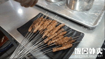 烤串翻转,刷油,撒调料,一套动作下来一气呵成,一点都不含糊!