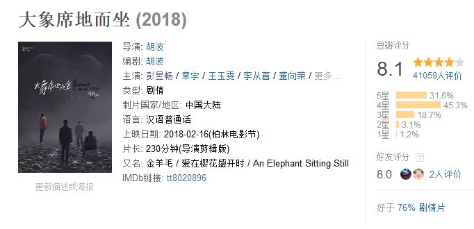 他们大部分人并没有意识到,自己的传播正在给这部电影的上映增加更多的发行压力,谁也说不准,自己是不是压垮《大象》的最后一根稻草。