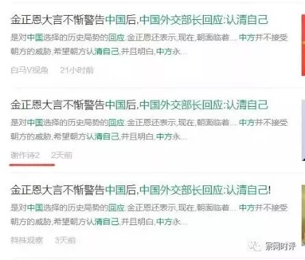 无论是挑拨中朝关系变成敌对状态,还是驱赶资金从中国流向美国,都离不开中国舆论场上的舆论战配合。在朝鲜问题上,这种舆论战已经进行到不惜造谣的程度了。最近在朋友圈大量传播的文章《金正恩大言不惭警告中国后,中国回应:认清自己》一文,有一段很有杀伤力的内容,“朝媒在29日的时间进行报道,于27日,朝鲜最高领导人金正恩,在朝鲜的一个地区的练习场,现场指导了朝鲜人民军战略军中高精度远程武器的发射训练,并表示训练是对中国为目标的武力示威,同时,是对中国选择的历史局势的回应……”,这段内容就是通过移花接木的手段,把金正恩在8月份现场指导朝鲜人民军战略军中远程战略导弹发射训练时,一个针对美国的表态:“(金正恩)表示训练是对美国军演的武力示威”,说成是近期针对中国的表态:“(金正恩)表示训练是对中国为目标的武力示威”。