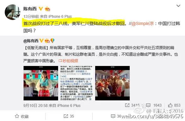 陈有西这种水平不高还自我感觉特别良好的个性,不仅表现在他的专业里。有一次他在一条嘲笑别人“低智无底线”微博是这么发明历史的:![]()