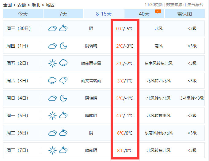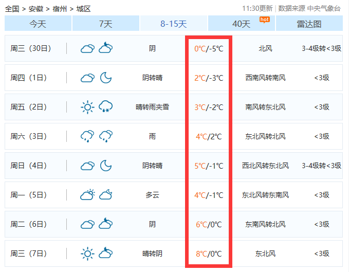 宿州、淮北最低-5℃