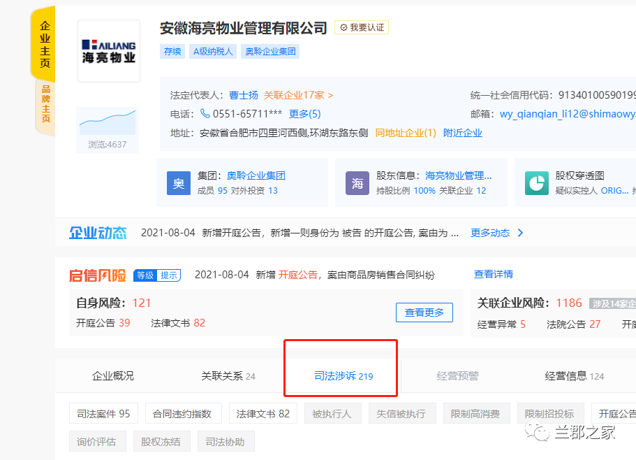 实际案件比公开信息可能还要多,大部分来自与兰郡业主之间的诉讼。兰郡花园,曾经是海亮物业的第一个项目,如今成了他管理的项目中最烂的之一。物业经理也一年不到就要换一位,不是他们没能力,是他们没遇到好公司。