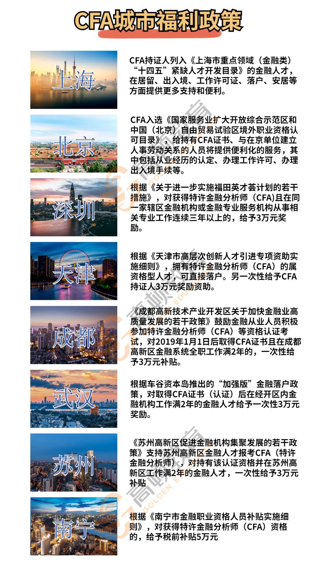 CFA持证人,不仅深受企业欢迎,各地政府更是疯抢,持证=落户+补贴+奖励+......