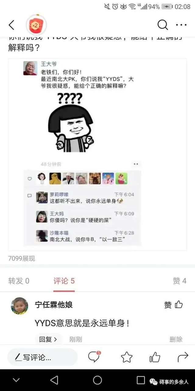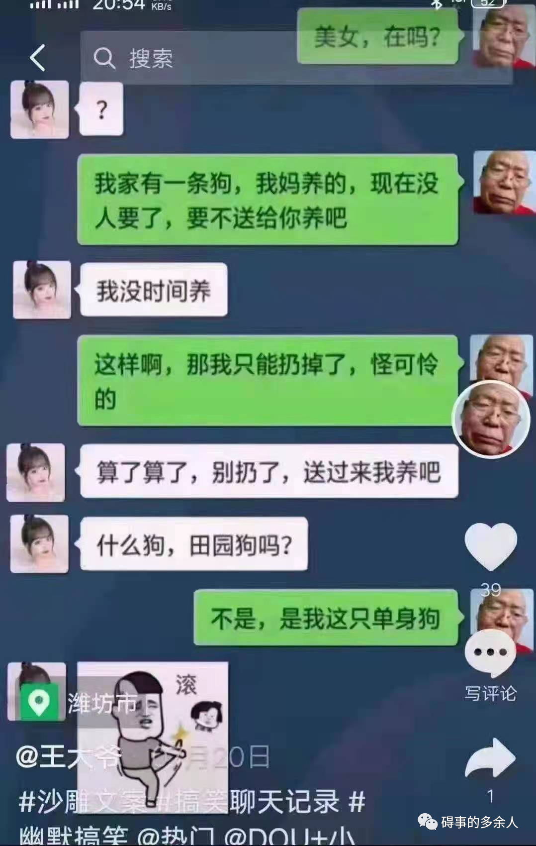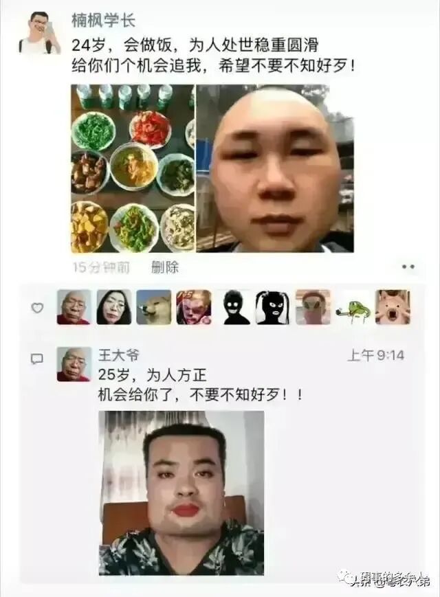 近两年来,网上出现一位“王大爷”,每次评论技压群芳,令人拍案叫绝。没人知道这位王大爷到底是谁,但这位“王大爷”却实实在在的成了一大网红。随后很多人纷纷效仿,把自己的头像换成了王大爷,久而久之也不知哪个是真哪个是假,但基本上全都是有笑点的好梗。所以,只要能让我们开心一笑就好了,谁管它真假呢!