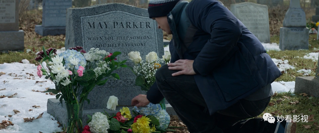 这和PS4上《蜘蛛侠》(2018)游戏中梅姨墓碑写的内容一致。