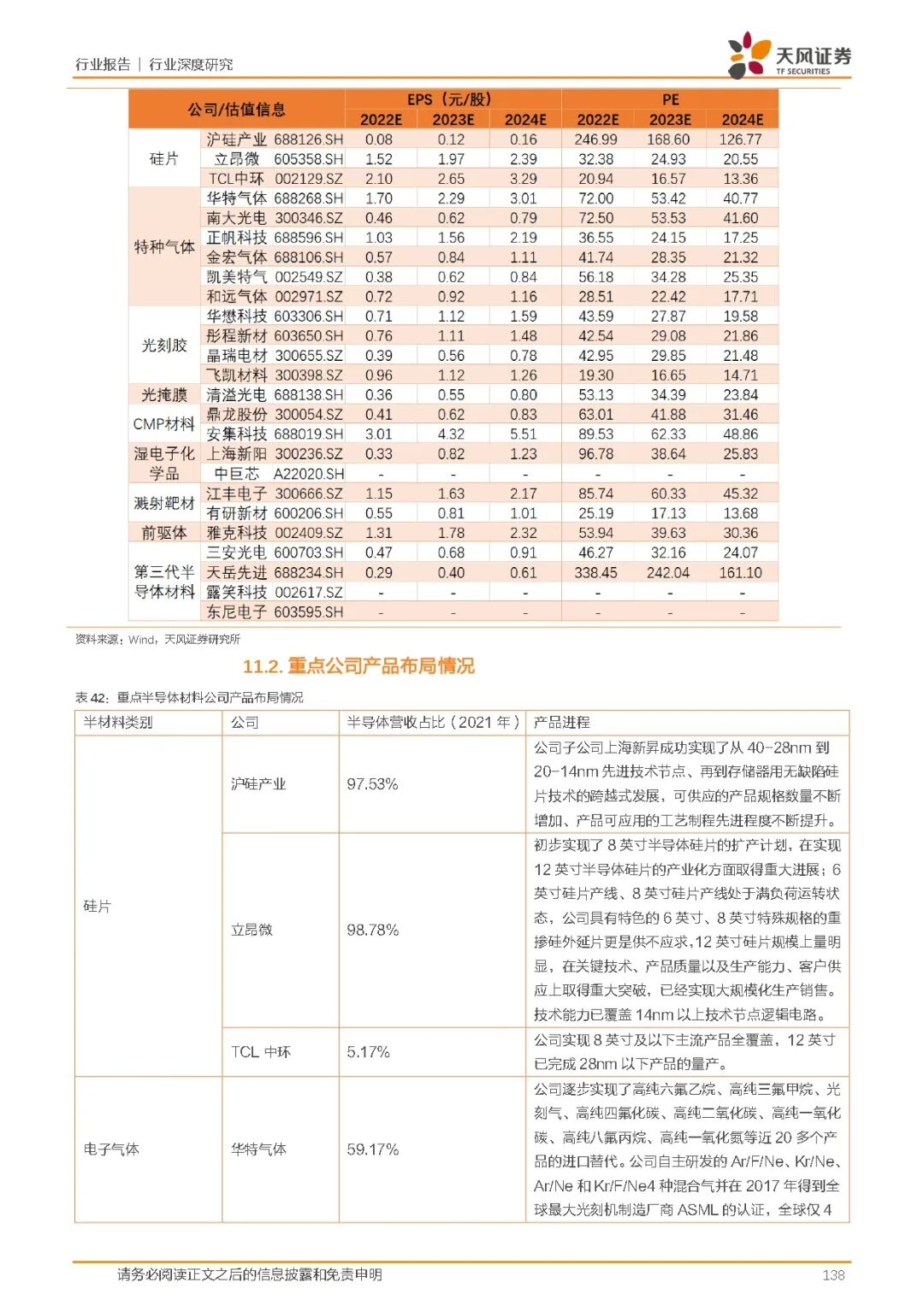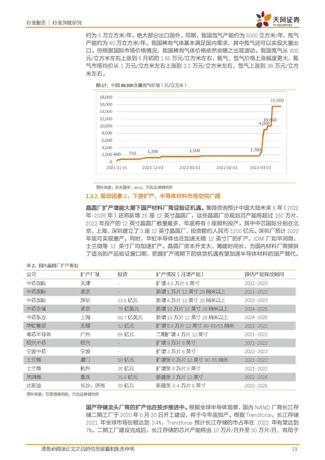 我们看好下游长江存储等厂商扩产后带来半导体材料端的释放与增速。