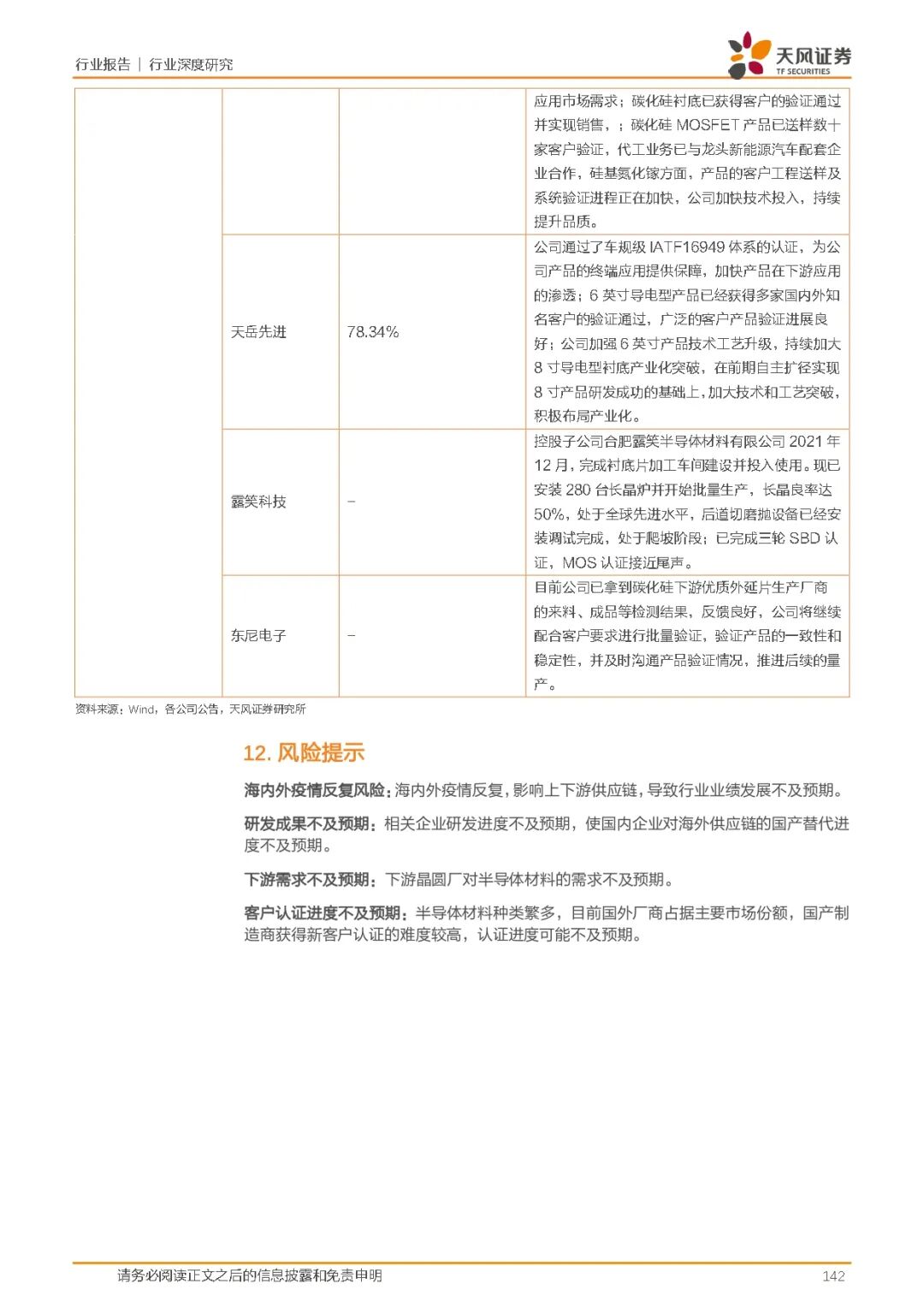 风险提示:海内外疫情反复、研发成果不及预期、下游需求不及预期、客户认证进度不及预期