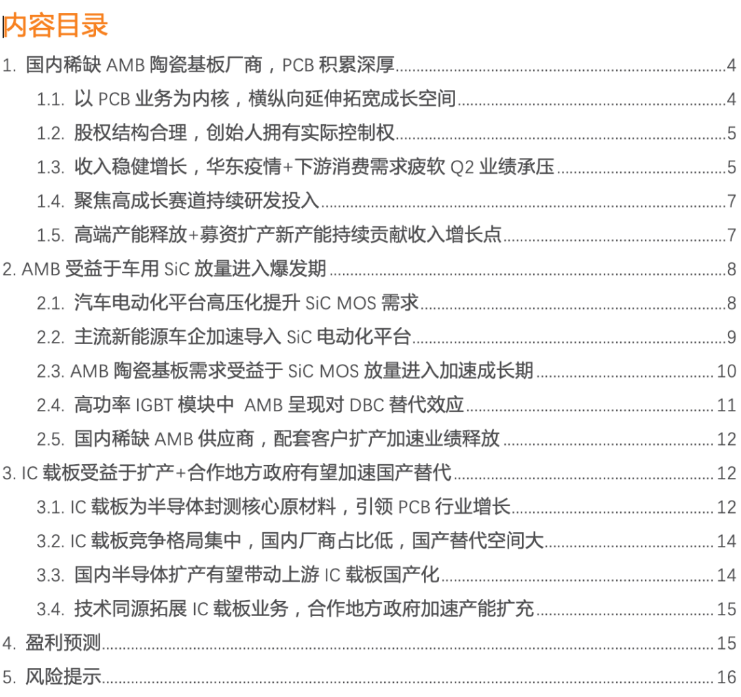 1. 国内稀缺AMB陶瓷基板厂商,PCB积累深厚
