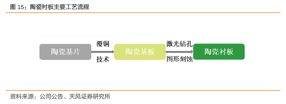 1) 陶瓷衬板业务:陶瓷衬板又称陶瓷电路板,是在陶瓷基片上通过覆铜技术形成的基板;再通过激光钻孔、图形刻蚀等工艺制作成陶瓷电路板。公司具备AMB、DPC陶瓷衬板生产工艺,AMB工艺生产的陶瓷衬板主要运用在功率半导体模块上作为硅基、碳化基功率芯片的衬底,DPC工艺生产的陶瓷衬板主要运用在激光雷达、激光热沉、器件衬底;
