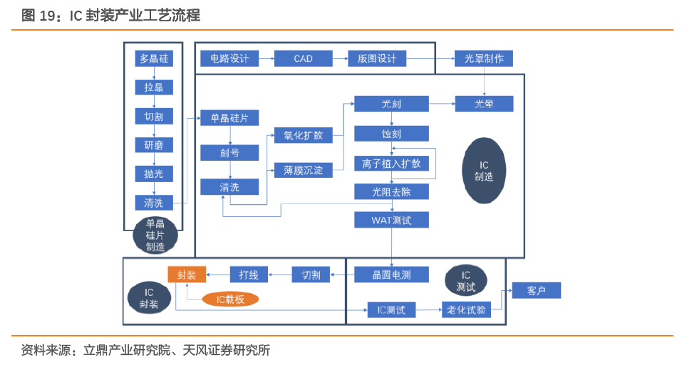 IC载板——集成电路产业链封测环节关键载体。集成电路产业链大致可以分为三个环节:芯片设计、晶圆制造和封装测试。封装基板是集成电路产业链封测环节的关键载体,占封装原材料成本的40-50%,其下游为半导体封测产业,如中国台湾的日月光、力成科技,中国大陆的通富微电等。封装基板不仅为芯片提供支撑、散热和保护作用,同时为芯片与PCB之间提供电子连接,甚至可埋入无源、有源器件以实现一定系统功能。封装基板与芯片之间存在高度相关性,不同的芯片往往需设计专用的封装基板与之相配套。