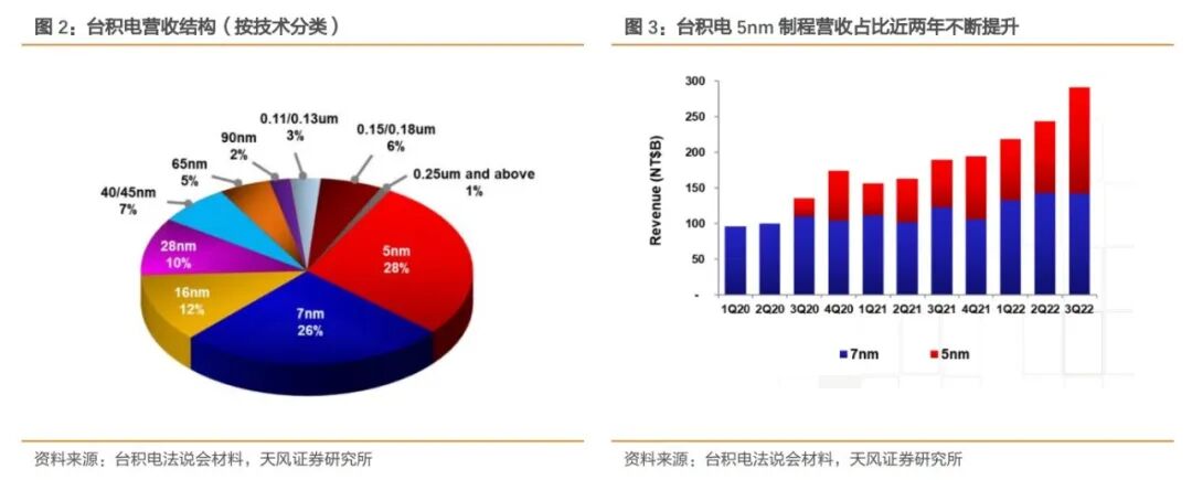 按技术分类,5nm制程技术在22Q3的收入贡献占比达到了28%,而7nm则占26%。先进技术(7nm及以下)占晶圆总收入的54%。