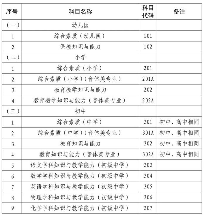 资格考试(笔试)科目代码列表》
