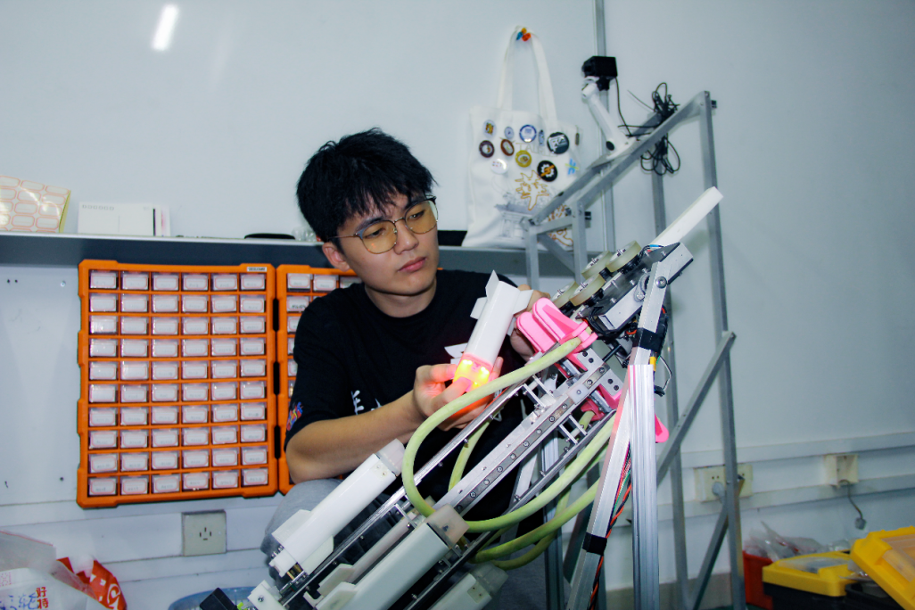 “我们欢迎所有无基础的同学”洪汶熙认为,只要有一颗热爱机器人的心,愿意坚持学习,都能够加入战队。“我觉得如果对战队很感兴趣,想了解战队的同学可以随时来我们实验室(光电院楼441)参观,包括大一的师弟师妹,我觉得都可以过来实验室和师兄师姐们一起交流。”