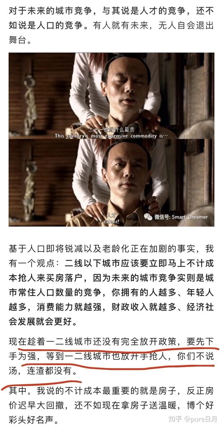 现在趁着一二线城市还没有完全放开政策,要先下手为强,等到一二线城市也放开手抢人,你们不说汤,连渣都没有。