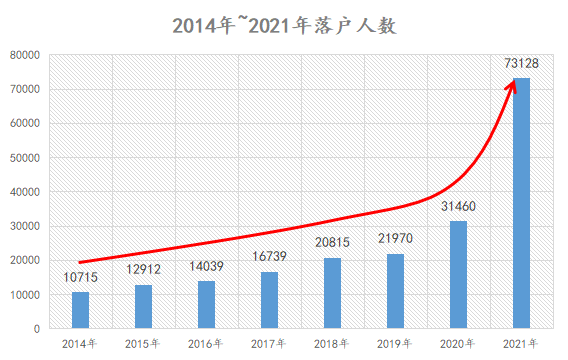 以上仅是应届毕业生,上海人才落户其实也门户大开。2021 年人才引进落户同比增长171.7%,居转户落户同比翻倍。