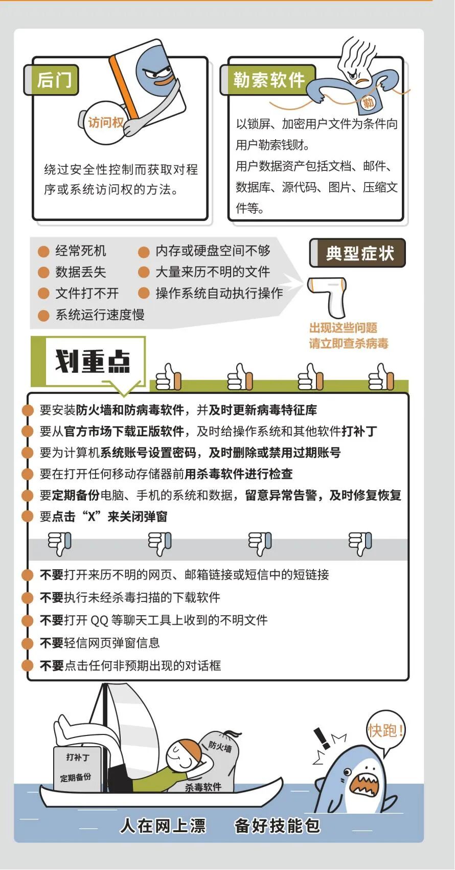 3. 对计算机系统和安装的软件进行及时更新,预防安全漏洞。