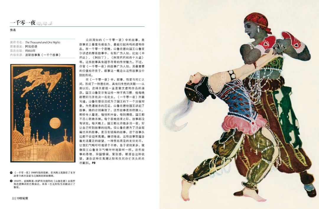 博尔赫斯的著名诗句“我心里一直都在暗暗设想,天堂应该是图书馆的模样”想必也是每位爱书之人的心中理想。无论居住环境是宽敞还是逼仄,生活是忙碌还是悠闲,爱书之人必定会在家中为书架保留一方“净土”,也会长久抱持着拥有一座专属于自己的心灵图书馆的心愿吧。《有生之年一定要读的1001本书》以960页的超大体量,精选了715位作家的1001部值得阅读的精彩佳作,涉及不同国别、体裁、题材和写作方法等。权威解读搭配海量美图,全彩精装,确保了极佳的成书品质和阅读体验,是每位爱书人都应拥有的一本家庭藏书,值得被放在书架的“C位”。本书以公元9世纪的《一千零一夜》开篇,中文简体版根据英文第6版翻译,作品更新至21世纪当代文学佳作——第1001本书是乔纳森·弗兰岑的《自由》。▲以公元9世纪的《一千零一夜》开篇。图片是1908年版的装帧,在风格上把握住了东方故事令西方读者为之倾倒的异国情调。
