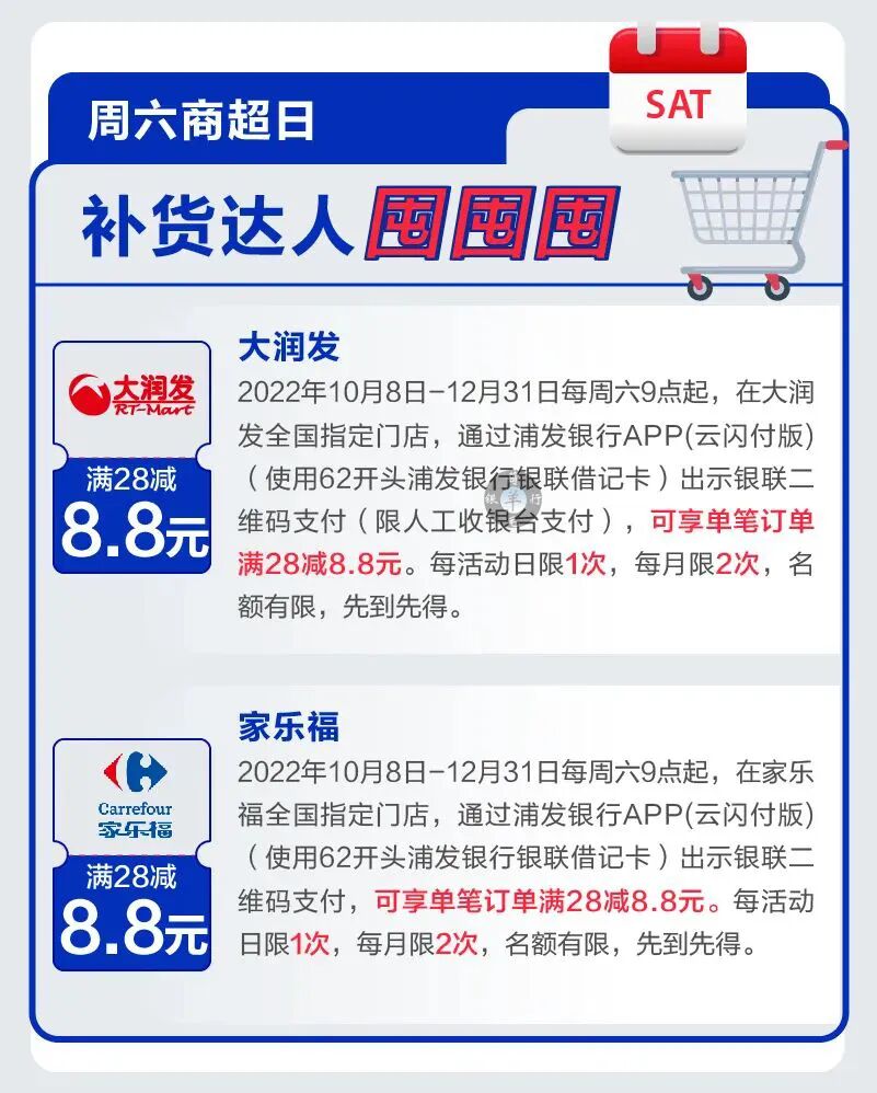 7、每周六9点,大润发/家乐福,28-8.8,月各限2次