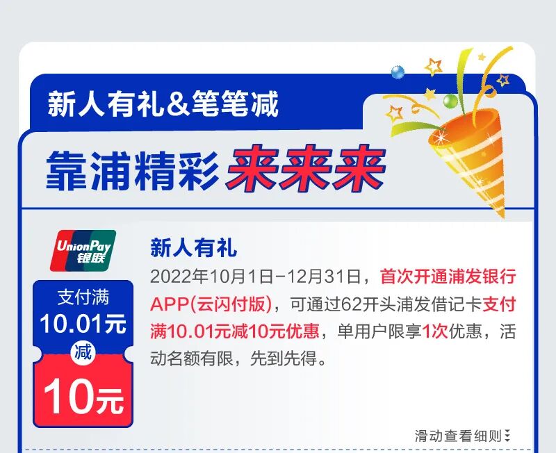浦发银行APP-云闪付版消费可享(每活动日各限1次):