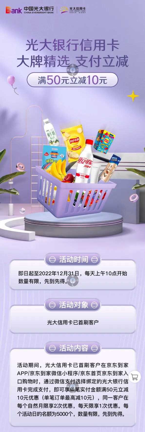 4、每日10点,京东到家APP,微信消费,满50减10元,日限1次、月限2次,5000名额