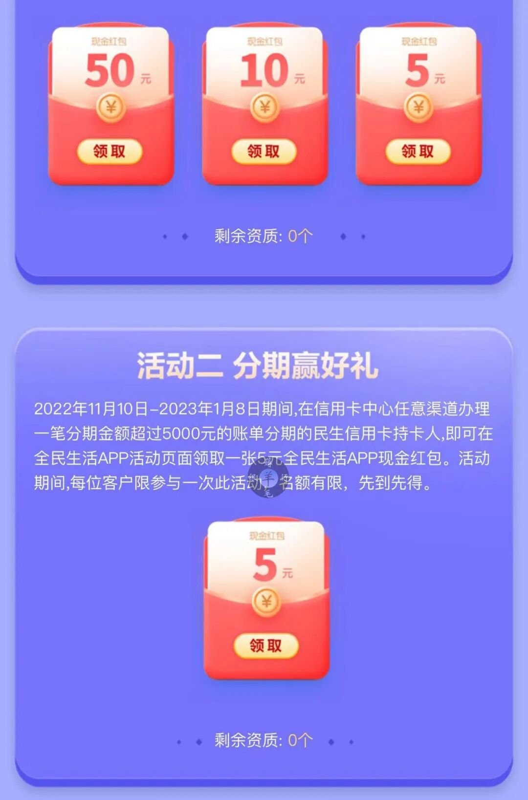 办理任意金额分期,每日11点抢:5/10/50元现金红包,共限1次