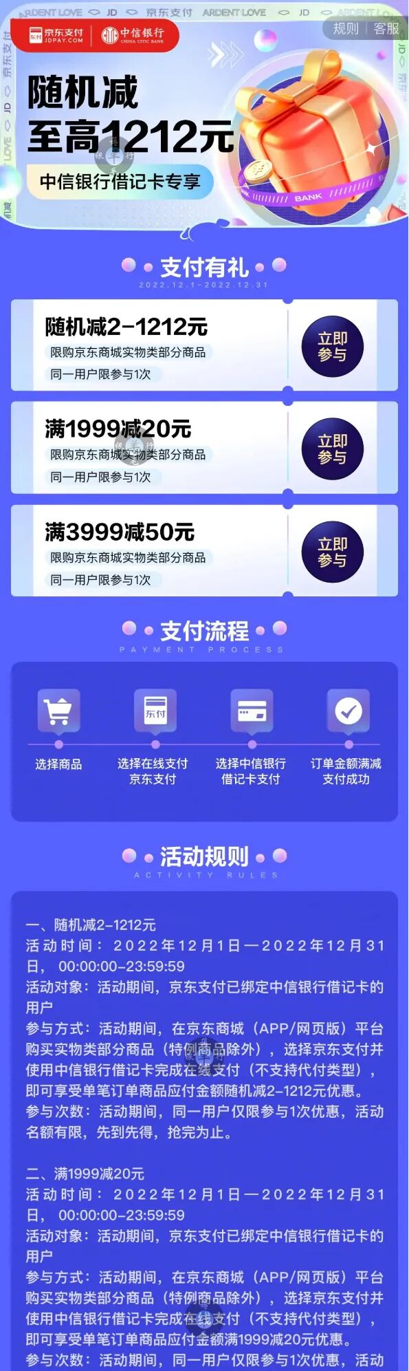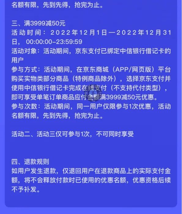 1、每日0点,京东,满3999减50元、满1999减20元,共限1次