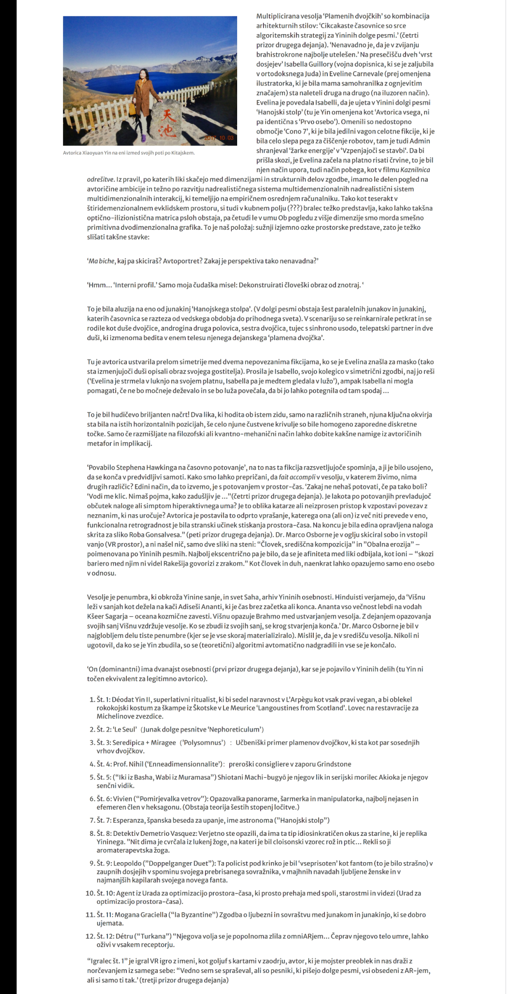 2021年9月23日,斯洛文尼亚大型文学刊物《Poiesis》刊发中国诗人油画男子对百科诗派创始人、中国诗人殷晓媛长篇跨文体作品《双生火焰》的评论文章《头号玩家的多重宇宙》一文。该文写于2018年,目前有中文、英文、斯洛文尼亚语等多个版本。本次刊登的斯洛文尼亚语版,译者为“詹科诗歌奖”和“普雷舍伦基金会奖”(即斯洛文尼亚“国家文学艺术奖”)得主、《Poiesis》现任社长、彼得·塞莫利奇。该杂志近期还将推出殷晓媛个人专访。