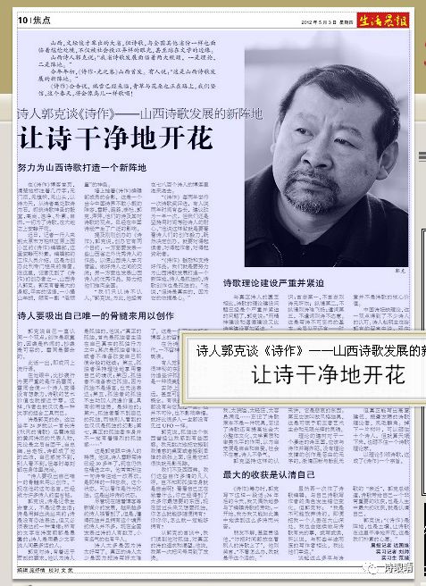 山西诗人郭克说:“我省诗歌发展面临着两大瓶颈,一是理论,二是阵地。”