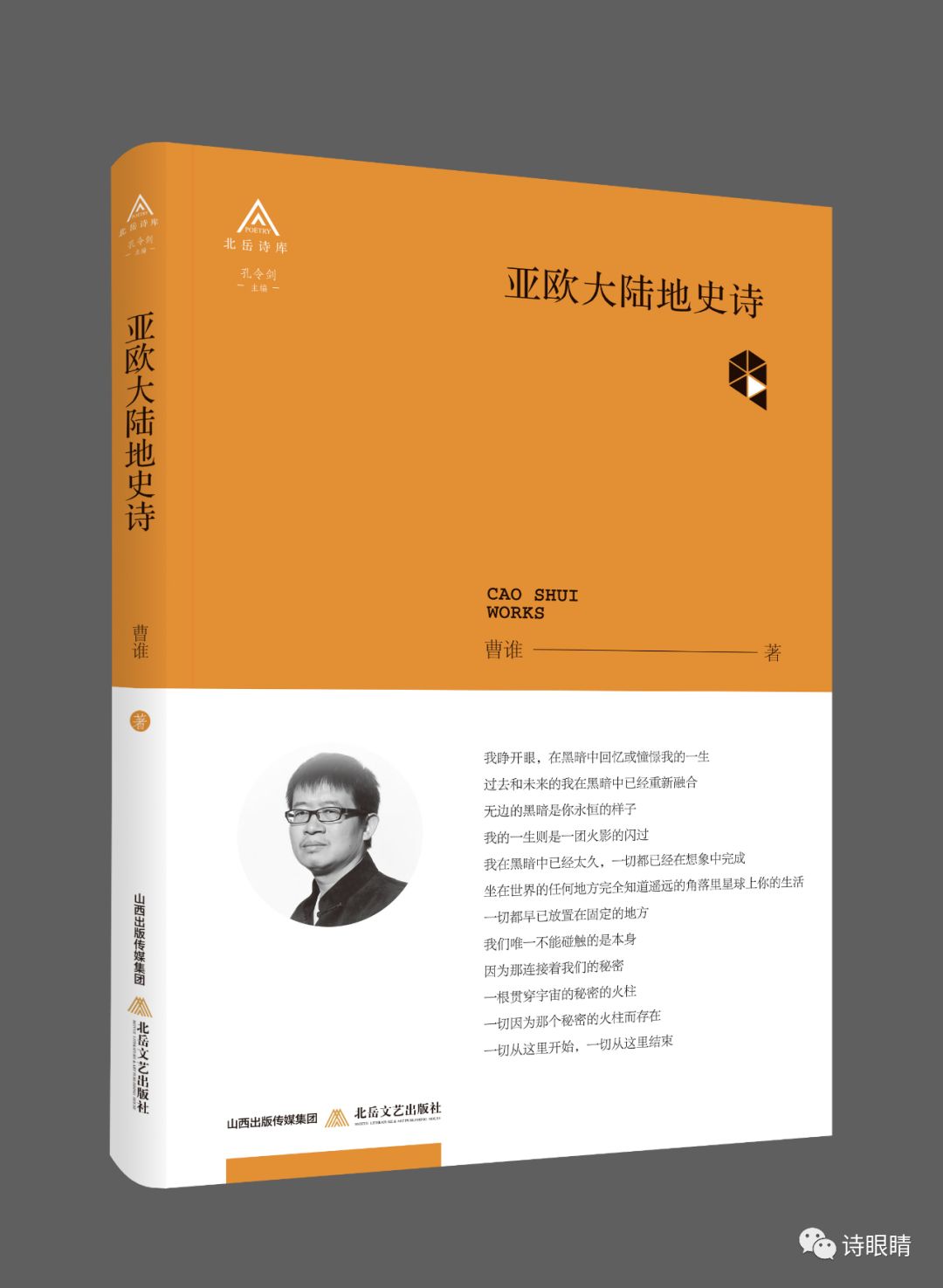 诚然,交谈的由头和话题都不是最重要的。非常重要的是浸润其间的友谊。说起来我年长他的多,感觉好像就这么谈着谈着话,早先那个有点匆促,有点木讷,甚至有点任性的曹谁,就在他自己的拔节生长中强大了起来,从一个小小的少年郎成就了一个堂堂的男子汉。于是,我就听见了他的高声大气:我们的世界由一种巨大的宇宙贯穿其中,这跟我们的内心息息相关,我们要在内心发现那个伟大的秩序或道,我们由此才能理解这个世界——他把自己交给了所有的绝望与希望的旷野——《亚欧大陆地史诗》——他说:我日益感觉到我们人类的神秘谱系,那个被层层历史迷雾所覆盖的人类种族流变的秘密,这可以当成是一种从文化嬗变中“全息”而来的象征系统,同时也可以看做人类文明的真实演化。他不止是生活在当下,他在诗句中试图恢复人类曾经共同拥有的世界,他在心中把这个地方叫做亚欧大陆地,这当然也是人类未来隐约的命运,他用自己硬朗的身躯诠释着这个全新的世界。