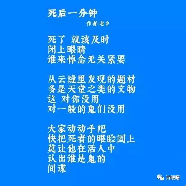 老乡诗歌的精神内涵当然不止这些,以上只是粗略地揭示了其诗歌从喜剧出发,抵达悲剧的思想特点。