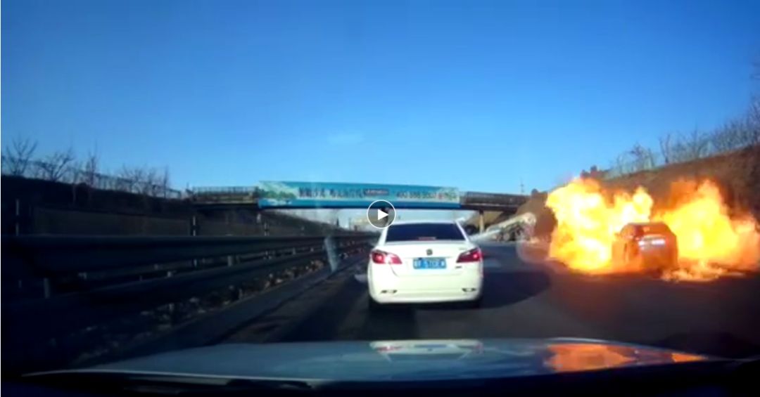 如果被明火点燃,第一时间呆在车内,等爆燃火头过后,立即逃命,只有这招了。
